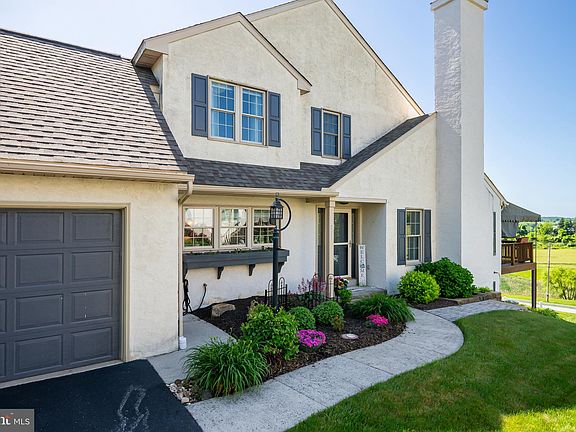 In beautiful Summerfield at Elverson, this bright master-down carriage home is move-in ready. Windows face the east and south. The attached side-entry two car garage (with steps to storage above) conveniently enters an updated eat-in kitchen with granite counters and tile backsplash. Oak hardwood floors cover the dining room, entry and powder room. The vaulted living room has a gas log fireplace with stone face, slate hearth and oak mantel. Patio doors from the living room lead to an awning-covered raised deck overlooking farmer's fields and valleys to the southeast. The first floor master suite includes a vaulted master bedroom with an updated master bath. A laundry chute provides easy access to the laundry room below. Two guest bedrooms and a bath are found on the second floor, including a loft and large storage room with cedar closet. The lower level is complete with a large family room, powder room, sitting area, craft room, workshop, laundry room and storage. French doors from the family room exit to a patio surrounded by flower gardens. This carriage home is heated and cooled with an energy-efficient ground source geothermal system. Basement walls are precast Superior Walls with 2X6 exterior construction. It has a new roof (2019) and newer windows (2013). Summerfield is a pedestrian-friendly Stoltzfus-built community of 320 homes with open space as horse pastures. On the eastern edge of Elverson, residents can walk to the Livingood Park, the Post Office, Elverson Fitness Club and Giovanni's Pasta. Convenience to a Walmart Plaza and the PA Turnpike is only a few minutes west in Morgantown. Want to live in a quiet, friendly and safe community? This beautiful home, in the northwestern corner of Chester County, is for you!