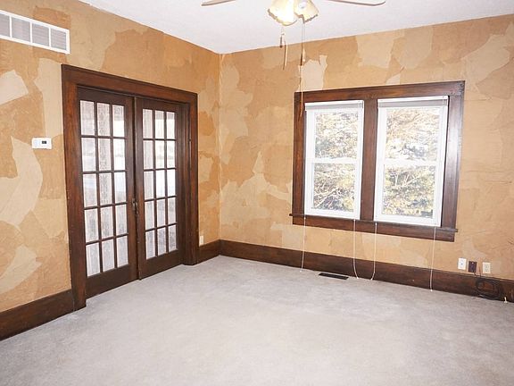 Nestled in the small community of Pretty Prairie, this charming bungalow is a must see. You will feel the old style charm of this home as it welcomes you the moment you walk in the front door. Beautiful original trimming and baseboard throughout the two front rooms keeps the nostalgic feel alive. The kitchen has oak cabinets with amazing storage including several Lazy Susans and the breakfast nook has wonderful morning light which will help you get your day started off great! An additional room with beautiful French doors on the main floor could have several uses including an additional bedroom. Upstairs you will find a master suite that consists of 3 separate rooms including the bedroom, a large closet with separate dressing area, and the bathroom. The full, unfinished basement is great for all of your storage needs. And for your cleaning enjoyment there is a whole home vac system! Enjoy your mornings and evenings relaxing on the full front porch. The large corner lot has beautiful mature trees, a 1 car detached garage, and an additional storage shed.