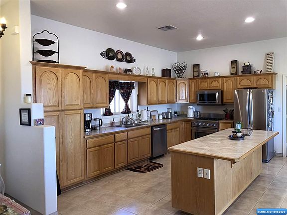 Custom 3Bd/2BA Southwest-style home sitting on 1 acre just outside of city limits. Fresh, open-concept and split-floor plan - master on one side of home, other rooms on opposite side. Tranquil front yard surrounded by adobe-style wall, with pines, fruit trees, roses, etc. Back yard is partially shaded by a "ramada" with carved posts, positioned to maximize those incredible long views of the rolling valley and mountains beyond!