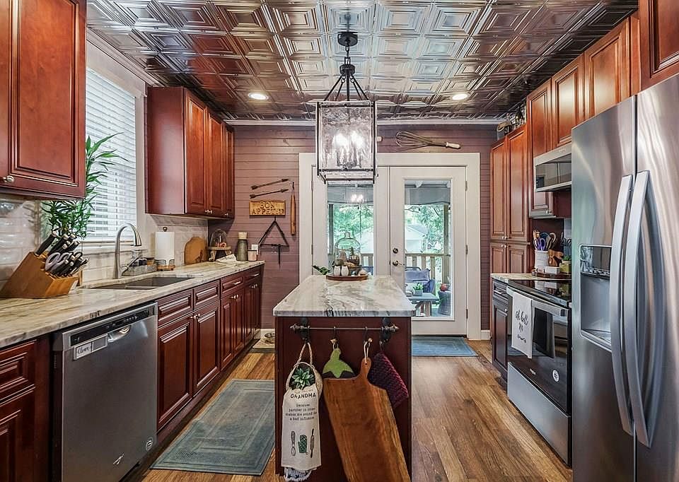 Privacy fencePot fillerSoft-close cabinetsCustom kitchenCustom bar topFire pit areaOutdoor tv setup