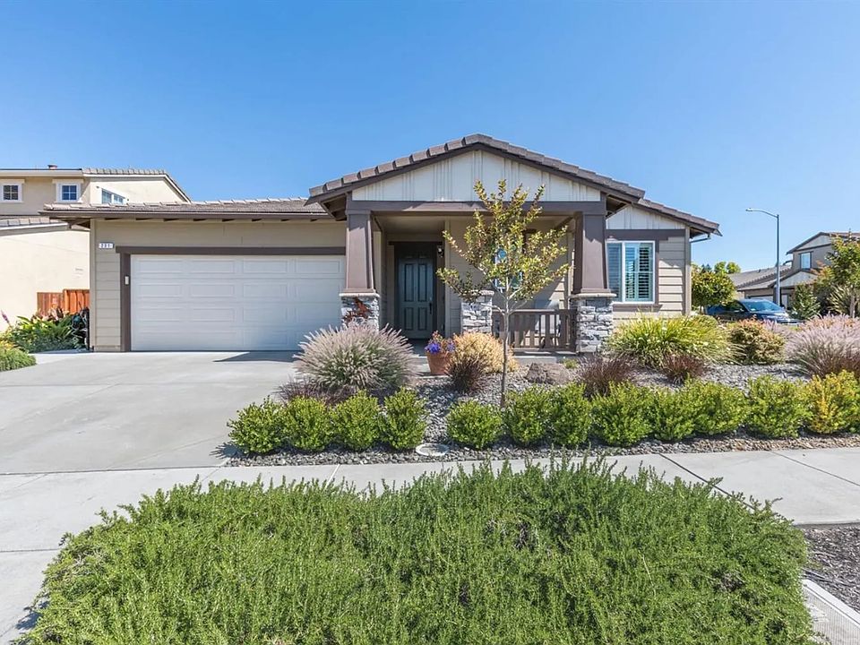 Spacious and inviting, this single-level Napa home offers 2,227 sq ft of living space with three bedrooms and two bathrooms. Featuring light wood flooring and an open floor plan, the home includes a large kitchen island, granite countertops, and stainless steel appliances including refrigerator, dishwasher, range, and microwave combo. The dining room, cozy fireplace, and dedicated office space add comfort and versatility. The primary bedroom is generously sized, and the laundry room comes equipped with a washer and dryer. Enjoy a low-maintenance backyard and the convenience of central heat and air.