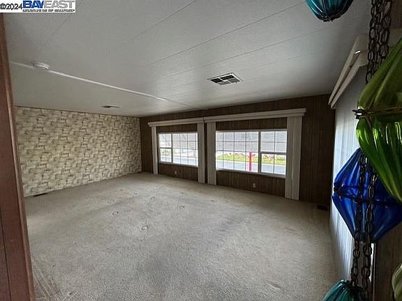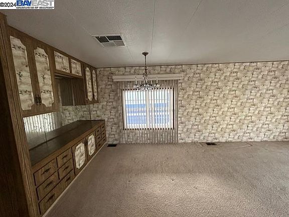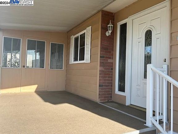 Well maintained mobile home in San Leandro's Mission Bay (adult community) has: 2 bedrooms; 2 full baths; separate living and family rooms; primary suite with walk in closet and private bath; dining area with built in hutch; family room has bar area; indoor laundry room with washer and dryer; spacious porch with enclosed section and open section; some dual pane windows; storage sheds; great location with easy walk to club house and pool.
