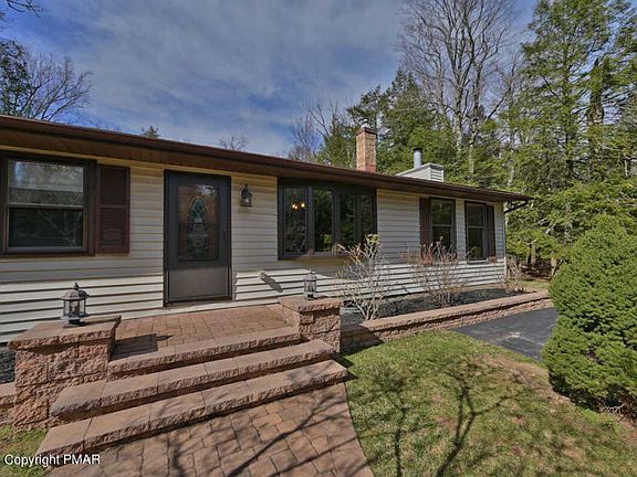 Pocono Paradise Featuring 2+ Acres In Sought-After Wagner Forest Park! Unique 4-5 Bedroom, 2 Full Bath Ranch Style Home Offering Nearly 3,000 SqFt w/ 2 Story Addition & Fully Finished Basement. Updated Kitchen Offers Plenty Of Cabinets & Counter Space As Well As Newer Stainless Steel Appliances & Open Concept To Dining Area. Living Room Showcases Stone-Faced Multi-Use Fireplace, Wood Beams, Large Windows & Sliding Doors To Deck w/ Awning! Lower Level Boasts Family Room w/ Brick-Faced Propane Fireplace, Dry Bar w/ Built-In Shelving, Laundry Room & Possible 5th Bedroom. Exterior Highlights Beautiful, Flat Tree-Lined Acreage Offering Front & Rear Lawns, Firepit & Long Paved Driveway w/ Expansive Parking Pad Leading To 2 Car Garage w/ Attached Carport! Total Taxes Less Than $4,000/Year. A MUST SEE!