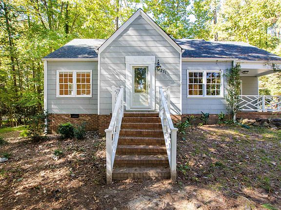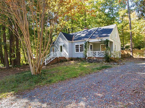 Move into this charming 4 bed, 2 bath, 1,741SF impeccably maintained bungalow on a .41-acre wooded corner lot in the highly desirable area of Chapel Hill. This quaint home blends original features and modern conveniences. Two bedrooms on the main level adapt to your specific needs as the 4th bedroom easily transforms into a primary bedroom, office or flex space. The updated kitchen features white cabinets, granite counters, stainless-steel appliances, and plenty of storage with easy laundry and outdoor rear deck access. Gather in the private dining room or retreat to the living room filled with natural light and a wood burning stove/fireplace that radiates heat throughout the house. The home boasts red oak and yellow pine hardwood floors wall-to-wall. The second level features two additional generously sized bedrooms and a full bath. Outside enjoy the fresh landscaping and large lot, perfect for outdoor activities and play. Home offers convenient proximity to top rated schools, parks, downtown Chapel Hill, Durham, Duke, RTP, new Apple campus, DPAC, dining, shopping, and walking distance to Wegmans. No HOA.