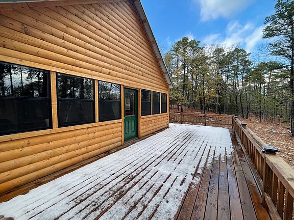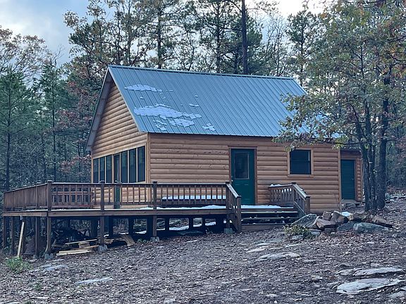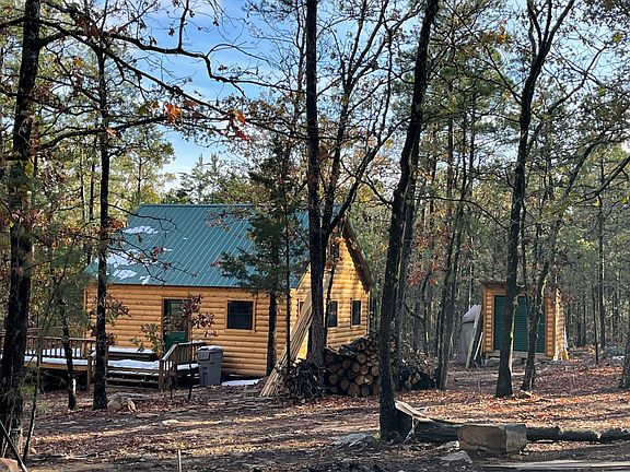 Welcome to MOONLIGHT RIDGE This newly built log cabin is on 80 pristine acres on top of Horsehead mountain. Imagine sitting on the deck surrounded by 80 acres of rolling woodland and the only thing you hear is the wind rustling through the trees. Tall Oak, Pine, Cedar, and Hickory trees cover this rolling mountain property. There are no restrictions on this land and it is great hunting. Take the path down to shorty creek that runs over 1300 feet through the property. This is where the black bear hang out and other wildlife. There are also several trials that go through the land for an ATV to get around. At the cabin you will find a bedroom on the main floor and a loft. It is fully insulated with spray insulation and wired for a generator that is in place with solar power up and running. This cabin was hand made and everything is one of a kind. The floors of the cabin are made of hardwood pine and oak. From the deck you can sit and relax while overlooking the property with a mountain view. Enjoy the Mountain terrain of peace and tranquillity. There is a shed for storage and to hold the generator that stays. The generator runs the whole cabin including the window air units to stay nice and cool. This acreage is located in the Kiamichi Wilderness where you have miles of trails to explore and a gated entry for privacy. Don't miss the chance to own this beautiful cabin and the most breathtaking mountain land! Call Dawn at the Red River office in Durant for your personal tour today!