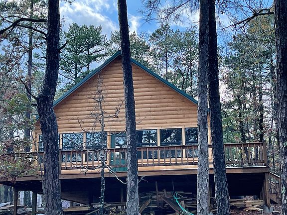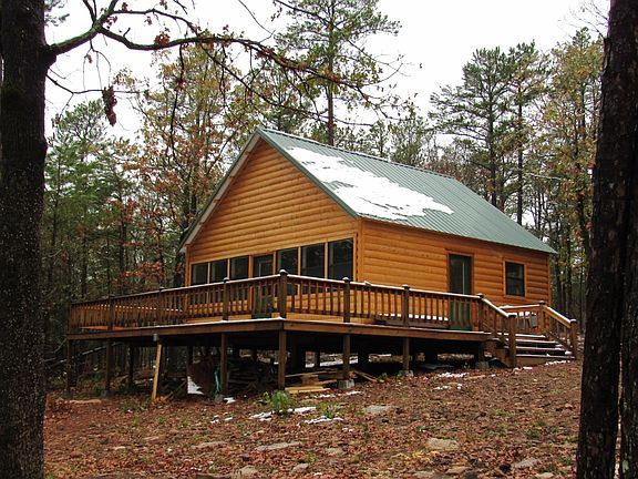 Welcome to MOONLIGHT RIDGE This newly built log cabin is on 80 pristine acres on top of Horsehead mountain. Imagine sitting on the deck surrounded by 80 acres of rolling woodland and the only thing you hear is the wind rustling through the trees. Tall Oak, Pine, Cedar, and Hickory trees cover this rolling mountain property. There are no restrictions on this land and it is great hunting. Take the path down to shorty creek that runs over 1300 feet through the property. This is where the black bear hang out and other wildlife. There are also several trials that go through the land for an ATV to get around. At the cabin you will find a bedroom on the main floor and a loft. It is fully insulated with spray insulation and wired for a generator that is in place with solar power up and running. This cabin was hand made and everything is one of a kind. The floors of the cabin are made of hardwood pine and oak. From the deck you can sit and relax while overlooking the property with a mountain view. Enjoy the Mountain terrain of peace and tranquillity. There is a shed for storage and to hold the generator that stays. The generator runs the whole cabin including the window air units to stay nice and cool. This acreage is located in the Kiamichi Wilderness where you have miles of trails to explore and a gated entry for privacy. Don't miss the chance to own this beautiful cabin and the most breathtaking mountain land! Call Dawn at the Red River office in Durant for your personal tour today!