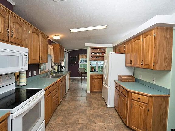 Fantastic stick built modular on a near acre lot (.96) that backs up to sweeping views of farm land. This 19 yr old home features an nice open floor plan, living room with pellet stove, spacious kitchen, and over 2000sf of living space. Home has full basement, built ins, a great 3 car garage and roof only 5 years old. Master bedroom suite with jetted tub,Central Air, off street parking for 10 or more, skylights, formal dining room, vinyl tilt in windows and lots of natural light.