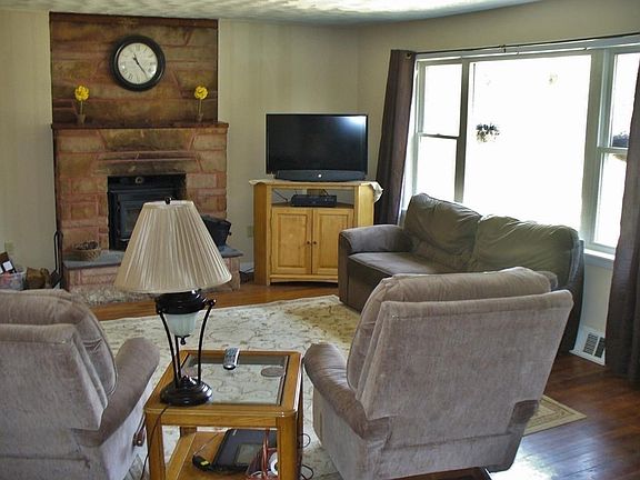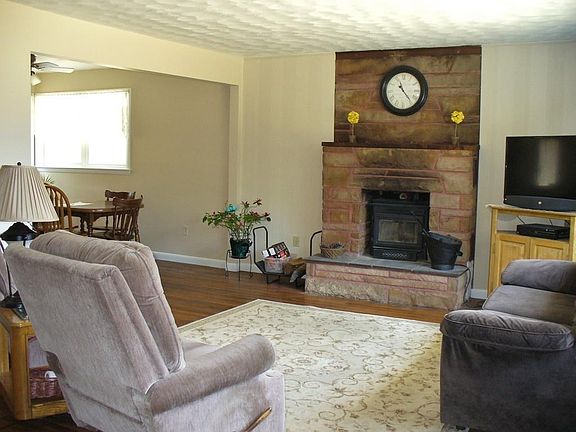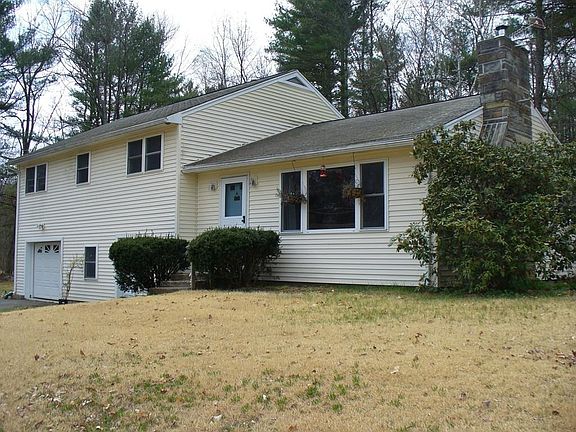 So many good things here! Cheery & sunny 4 bedroom, 2 bath home with a great open floor plan, set on 2.9 acre lot with huge front lawn & private woods behind. Living room has fireplace with wood stove, dining room is open to living room, the master bedroom has master bath, & there is hardwood flooring in living room, dining room, hallway & 2 of the bedrooms. There is a bonus room on the lower level with its own separate entrance, which has been office, workout area, playroom to the family in the past, & a one car garage. Outdoors, there is a 20 foot deck looking out to woods, a fire pit for evenings under the stars & a wonderful feeling of privacy. All this & you are close to shopping & convenient routes to major highways in all directions. .
