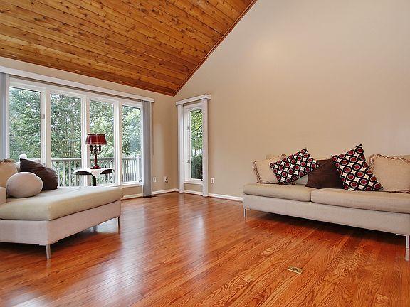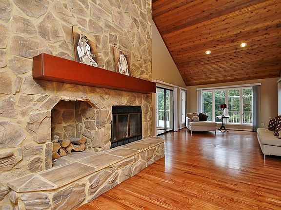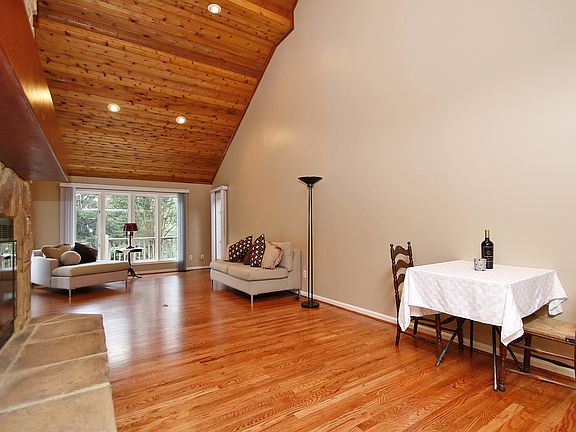 BEAUTIFUL & PRIVATE! WELL MAINTAINED CEDAR & GLASS CONTEMPORARY ON OVER 1 1/2 ACRES. FRESH PAINT INSIDE & OUT, NEWLY REFINISHED HW FLOORS, UPDATED GARAGE, NEW ROOF, NEWER HEAT, AC & APPLIANCES. UPDATED LANDSCAPING. ENTERTAINER'S DELIGHT WITH OPEN FLOOR PLAN & LARGE DECK. GREAT ROOM W/2 STORY MASONRY FP, HW FLOORS. UPPER LEVEL MASTER SUITE W/JETTED TUB, SKYLIGHTS, FIREPLACE, 18' CEILINGS & MORE!