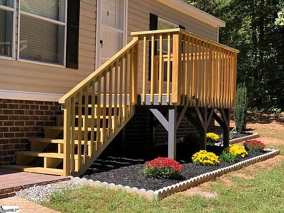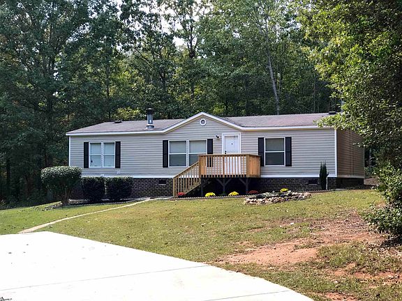 This one-of-a-kind, private home property located in Greenville County could be yours! The lovely home is located at the end of a quiet street. As you drive in on the long concrete driveway, you will find yourself surrounded by oak trees and beautiful scenery. The front of the house is neatly decorated with mini landscaping. There’s a creek running alongside the property in the back. Inside, you will find 3 charming, remodeled bedrooms with walk-in closets and 2 full baths. The open floor plan offers a spacious living room with a wood fireplace, kitchen with a large island, and a dining room. Features include neutral fresh paint throughout the home, beautiful crown molding in the living area, and high quality laminate flooring in the living room and bedrooms. The kitchen, dining room, and hidden laundry room are floored with light tasteful marble design waterproof planks. The outside features newly built porches, and a storage shed which will remain.