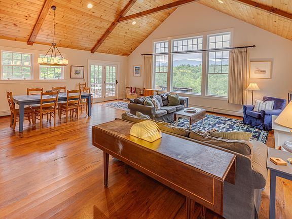 5+/- Acres - Farm style contemporary home with views of Franconia Notch, Mittersill, Cannon Balls and beyond. The minute you enter this home it envelopes you with a feeling of warmth. From rich wood floors and handsome finish work -  to very literally - the warmth of radiant heat. Bright with natural daylight and the high ceilings amplify the sense of space. Open living-concept seamlessly blends generous sized rooms. Whether in front of wood stove in family room, conversation in living room or curling up with book in screen porch, a feeling of gathering is sensed. Nicely appointed with granite counters the kitchen affords you lots of elbow room in case there is more than one cook in the house! Set back off road and bound by stone walls, affording privacy and nice yard, home is a recreational paradise. Imagine waking up to  Franconia Notch framed by expansive windows, bringing the outdoors into every room. You move to the deck to enjoy your coffee pondering how you might fill the day, hiking one of the 4,000 footers, cycling, exploring rivers, Mtn. biking? Step outside and you'll find yourself immersed in a haven for outdoor enthusiasts with year-round adventure awaiting from Franconia to Crawford Notch, Cannon to Bretton Woods Ski areas. Tiled entry and large mudroom is fitted out with large closets. Just short distance from village, known for its excellent schools and vibrant community. Air conditioning, propane radiant heat, EV hook up, large shed.