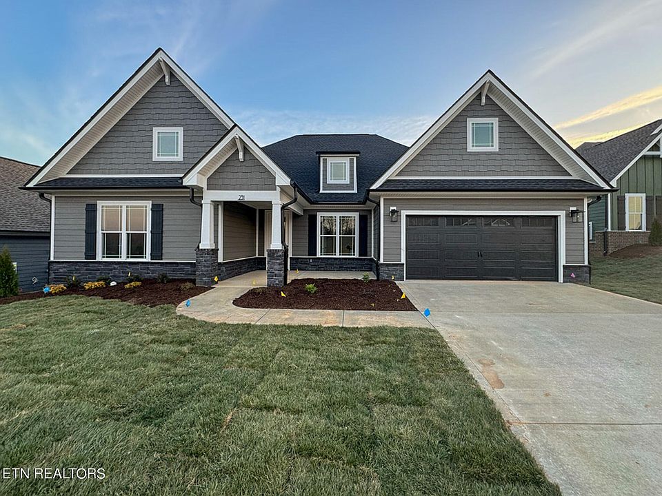 Must see new construction in the brand new & conveniently located Haven Hill community in Lenoir City! This Cumberland plan offers a functional layout full of enhancements including an open concept main living space that features a beautiful vaulted ceiling, a deluxe kitchen featuring GE Profile appliances, granite countertops throughout, a large fully tiled owner's shower, beautiful LVP flooring throughout, crown molding in living areas and owner's suite and much more. This home includes lawn care as well as use of a large community clubhouse, pickleball court and neighborhood pool.