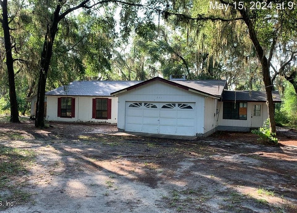 This three bedroom two bath home in Crescent City features a brand new roof! Situated on 3.95 acres with chain link fencing. Vaulted ceilings and wood burning fireplace in the family room. Multiple outbuildings.
