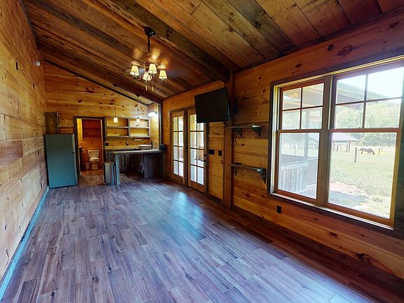 Incredible farm with timber frame barndominium on a creek! This 16+/- acre farm has many features including a large riding ring, pole barn for storage and multiple pastures with fences for grazing or planting crops. The timber frame barn has 4 full stalls and a large parking area for all your toys. The 300 sqft studio apartment is on the main level with all wood interior with a rustic feel and has 1 full bath. The upstairs could be converted into more living space for future expansion! With OMG mountain views, a trout filled creek, don't miss this great opportunity to own your very own homestead! 3D Virtual Tour Linked!