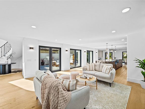 Stunning mid-century Spanish revival residence that exudes classic elegance and has been completely redone to a must-see level of sophistication. Situated on a coveted interior street-to-strada lot, on the exclusive coastal enclave of Lido Isle in the heart of Newport Harbor, this is a move in ready entertainer’s dream. Enter through a one-of-a-kind designer custom glass door to a grand yet welcoming foyer. This opens to the gorgeous bathed in light open concept living spaces that feature contemporary wide plank wood flooring, upgraded fixtures and finishes and views through multiple French doors out to the central entrainer’s completely redone patio. Completely captivating is the custom chef’s kitchen that has been artfully designed and makes an unmistakable statement. Featuring luxury appliances, marble counters, custom cabinets, updated lighting, fixtures and hardware, a large built-in refrigerator and all of this is anchored by a massive bar seating island with eye catching marble that wraps to the floor at each end. With great natural light from French doors opposite the bar the kitchen opens out to the interior courtyard and as the heart of the living spaces is flanked on either side by an immersive formal living room with French doors to both the interior courtyard, and to the back patio, and the formal dining room which then opens to a spacious family room that completes the living spaces. Up the elegant, curved staircase find the enviable resort inspired primary retreat complete with a gold bedecked ensuite that is a one of kind showpiece. With dual vanities, an oversized marble rain shower, a luxurious soaking tub, private water closet, and a massive walk-in closet the primary suite is complete with a private deck. Two additional bedrooms, each with custom ensuite baths and a convenient laundry room complete the living spaces. Out back is a classic strada patio which has great sun and the perfect amount of space to meet and host some neighbors. An attached direct access two car garage also has space for your bikes, surfboards, and all your beach toys. Living on Lido Isle offers access to community beaches, docks, green spaces, a fun playground, tennis and pickle-ball courts and a residents’ waterfront clubhouse. Located in the heart Newport Beach enjoy enviable access to world renowned recreation, dining and entertainment options, and is just minutes to Fashion Island, John Wayne Airport and everything Orange County has to offer. Welcome Home!