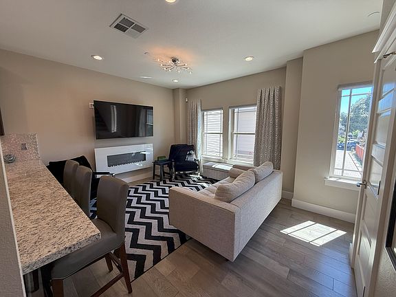 3, 6, or 12 Month Lease, with $3,378 deposit, Available Now. Charming, fully furnished 2-bedroom, 3-bathroom, 2-car garage home located in the heart of Downtown Pleasanton. Enjoy a short stroll to award-winning restaurants, coffee shops, wine bars, boutiques, and the popular Pleasanton Farmers' Market. This move-in-ready home includes Tempur-Pedic mattresses, HDTVs, a fully equipped kitchen with cookware and tableware, and an in-unit washer and dryer. Yard maintenance, garbage service, and alarm monitoring are all included in the rent. Take in peaceful ridgeline views from the 3rd-story primary bedroom, or relax on the seated balcony just off the 2nd bedroom perfect for morning coffee or an evening glass of wine. Ideal for business travelers, those in the midst of a remodel, or anyone navigating a life transition just bring your suitcase and settle in. Flexible lease terms available 3-month minimum stay, with discounted rates for 12-month leases. No pets or smoking permitted. All utilities are set up, the tenant pays for PG&E, water, and cable/internet. However, the home's solar panels help offset electricity costs, making utilities more affordable. Located within the highly rated Pleasanton Unified School District, this home offers comfort, convenience, and a prime downtown location. A Three-Month minimum stay is required (3-6 month stays at a higher rate) ; and up to a 1 -year term is available. Owner pays for yard maintenance, garbage & alarm services. All Homes are Non-Smoking, and No Pets are accepted, as there are no yards. Tenant responsible for gas and electric, cable/internet, and water/sewer.