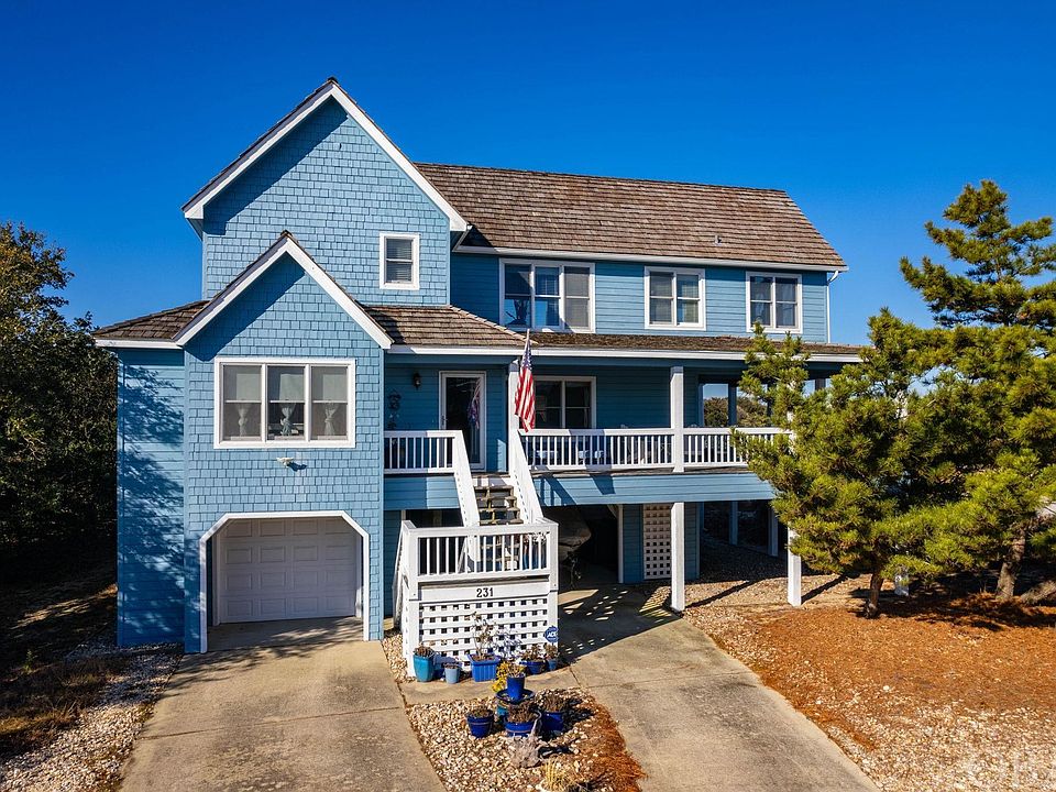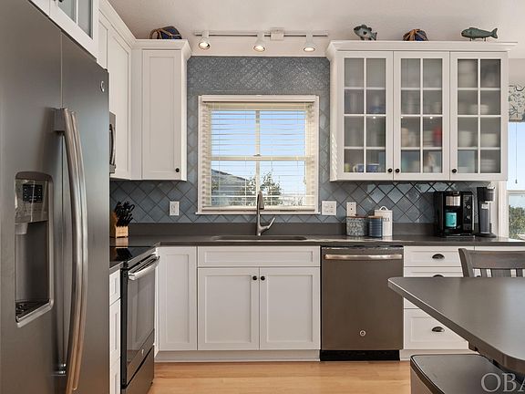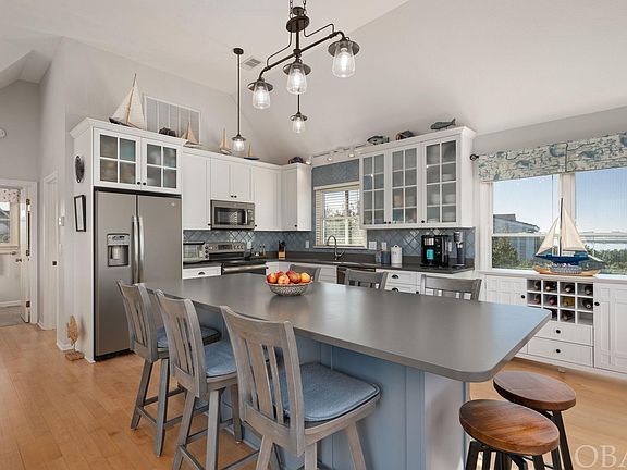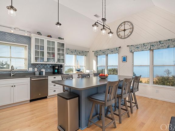 Gorgeous renovated water front property in the heart of Nags Head! Enjoy breathtaking sunsets on multiple decks overseeing both the golf course and endless views of the sound. Fully renovated inside and out with timeless updates and coastal finishes throughout. This reverse floor plan has three large bedrooms on the main level; two bedrooms sharing a jack and jill bathroom and the master bedroom with a custom ensuite featuring stunning tile with glass surround. Upstairs is the fourth bedroom with a built-in murphy bed/desk, third full bathroom, enclosed sunroom office with french doors, spacious living room and custom kitchen. This gourmet kitchen is loaded with new appliances and an extra large quartz island that seats up to 10! Views galore from every room! Enjoy all that waterfront properties have to offer with very little maintenance. Outside you will find an attached large one car garage, carport parking, covered outdoor living space with a hot tub, plenty of deck space and a private backyard with a fire-pit. Full kitchen and bathroom remodels, New AC units, new water heater, new cedar shake roof all in the last 5 years! Nothing has been left for you to complete! Move in and enjoy beach living at its finest. Village beach and tennis club membership is optional and includes an oceanside olympic sized pool, restaurant, bath house and tennis courts. Nags Head Golf Links is optional membership that includes an 18-hole championship course. The golf clubhouse features a restaurant, lounge, golf shop and locker rooms. This home and community is perfect as a primary, secondary or an investment property. Advertised vacation rental income is projected to be up to $100,000 for the 2023 season!
