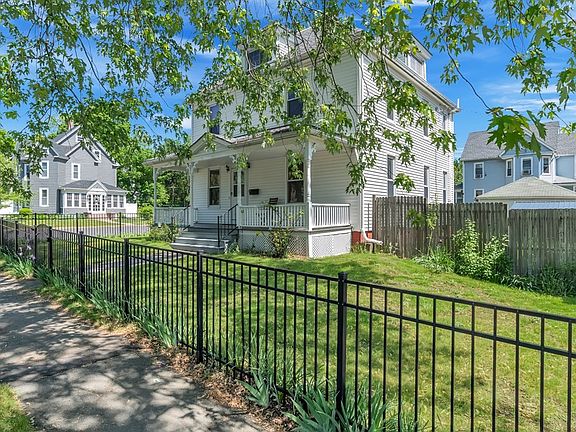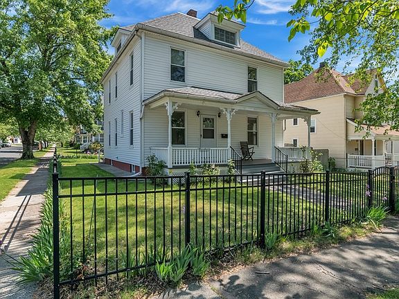 Offer deadline Wednesday May 31st at 5p. Meticulously maintained 4 bed/2 bath Foursquare w/ 2-car garage on a corner lot with easy commuting options. Yard is fully fenced with bulb and perennial borders, and raised beds are ready for gardening. The home itself strikes an ideal balance of original character (pocket doors and woodwork) and modern amenities like the updated kitchen (2015) featuring newer cabinets, countertops, backsplash, dishwasher, stove (2019) and great pantry. A circular 1st floor layout offers entry foyer, LR w/ French doors & hardwood floors that flow seamlessly into the spacious dining rm. The double sided staircase leads both upstairs from the foyer, or across to the kitchen. Upstairs: 4 bedrooms, a full bath w/ shower, + access to the insulated, painted useful 3rd floor attic space. Finished basement offers a second full bath w/ walk-in shower + separate tub, exercise room and more. Extras: efficient gas heat & hot water, and a new shed.