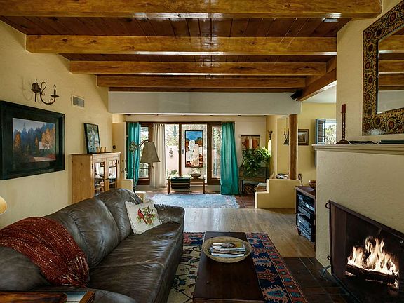 Wonderful custom Stamm home in a great location. Situated in a quiet neighborhood where most lots are .5 acre, this large corner lot is dotted with mature trees, and the 10-year old guest house is absolutely top-notch with its own back yard and circular driveway, and with an excellent rental history. Wood and tile floors, beams and vigas in the main rooms, a lovely landscaped back yard, and in general, the home and guest house are filled with charm and warmth. The driveways hold plenty of extra parking plus there is a two-car garage. Close to the hospital, Trader Joe's and Whole Foods, Museum hill, local restaurants and shops. Easy access to I-25 or to downtown Santa Fe.