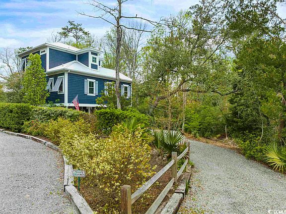 You will love this HIDDEN GEM in Pawleys Island SC. Tucked away on a quiet street with marsh views of historic Pawleys Island, this 4-bedroom, 3.5-bath raised beach with parking underneath for two cars on ground level is a must see. Offering you 2308 sq. ft. of privacy nestled in natural wooded surroundings, the home features Brazilian Teak tongue & groove floors throughout, and a modern gourmet kitchen with high-grade stainless appliances. Built in 2017, the exterior is HardiePlank with a metal roof and abundant windows for tons of natural light. Every night, drift off to sleep to the subtle sounds of nature and the forest, wake to the sun through the trees. Situated on a nearly half acre lot that abuts the South Causeway, it has its own path across the property making for a quick trip to the beach. In friendly neighborhood on no through street, the property also includes a 500 sq. ft. ground level mother-in-law suite with its own entrance that is currently producing rental income through Airbnb.