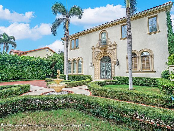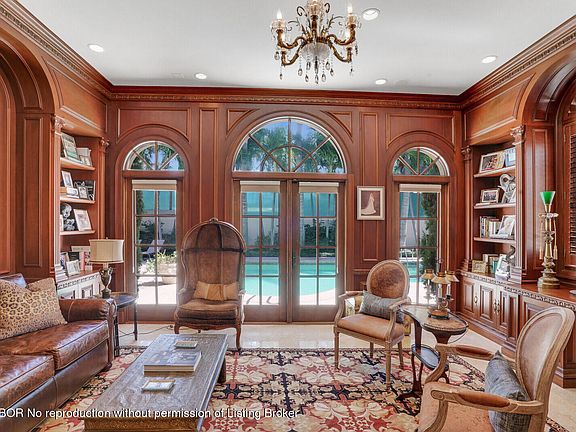 A sought after in-town street with lovely five bedroom family home. Elevated ceilings with natural coral columns, railings and fireplace. Wood paneled library and kitchen with family room overlooking private pool area.