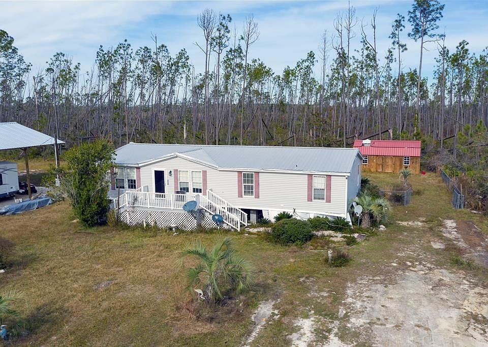 3BR/2BA double wide mobile home manufactured in 2007 with a metal roof. Has a brand new HVAC and a large shed in the back, all sitting on 0.55 acres and only 5 minutes from the beach. No real damage from the storm other than outside where some of the facia and soffit needs work and a couple of roof panels on the shed need replacing. Also, there is some skirting around the home that needs repair. Inside some carpeting needs replacing and possibly some repainting in areas. Very livable with plenty of room inside and out for all your toys. No restrictions.