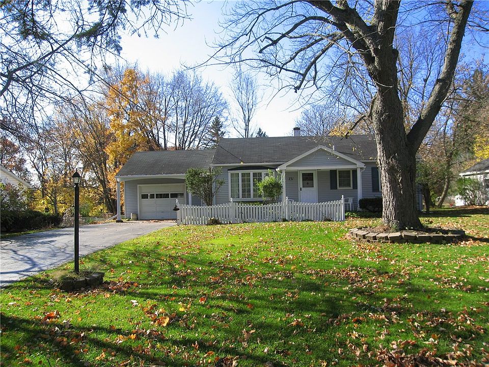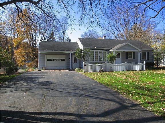 Family room addition with fireplace and doors to deck with nice back yard. Kitchen has a vaulted ceiling, hardwood floors, bath has walk in shower, first floor laundry. Oversized 1.5 car garage. Walk-up attic. Vinyl siding, roof have been replaced about 10 years ago. Penfield mailing address, town of Perinton, Fairport schools.