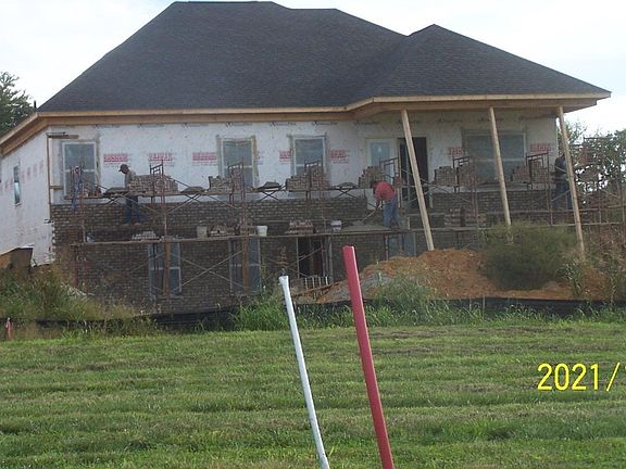 NEW CONSTRUCTION -Completion projected by NOVEMBER 30 All Brick 3 bath 2 bath ranch style with full unfinished walk out basement with utility garage--Basement framed for 4th bedroom-Family room- rec room-study or workout plus plumbed for kitchenette and plumbed for 3rd full bath so lots of potential. Kitchen has custom Shaker Cabinets with 3x6 kitchen Island plus pantry all granite countertops. Split bedroom plan-Huge Master with large walk in closet with trey ceiling and cam lighting. Master bath has soaking tub plus tiled shower double vanity . 9ft ceilings on main level plus trey in dining and master. LVT flooring throughout. 8x20 covered deck and 8x20 patio-Garage door is 18X8 insulated---A BIG BONUS walls in basement will have drywall up but not finished for this price