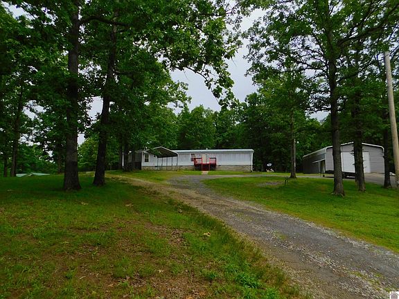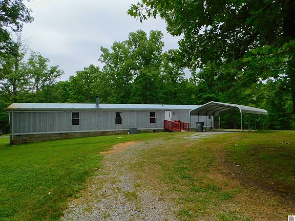 Location!!! Minutes from Buzzard Rock, Lake Barkley, many marinas and fishing holes, not to mention Venture River, and I-24. This 3 bedroom, 2 bath home is situated on +/- 5 acres. 2 carports and a nice 30x40 workshop/garage with 200 amp service. This is a manufactured home that has been converted to real property, a permanent foundation. Make this quiet spot in the woods your home today!!!