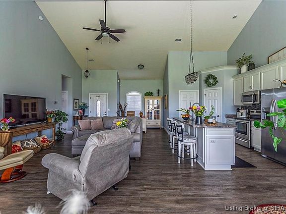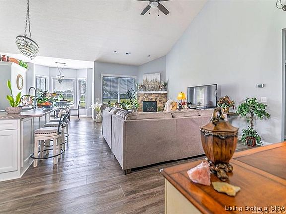 It's all about the sunrise and golf course views from the sizeable windows and back covered porch!! The location of this golf course home is perhaps one of the best to take advantage of panoramic views. Waters Edge Subdivision features a lakefront and community shelter with play area for member use. This LIKE NEW custom home boasts character and charm. This custom designed open layout hosts kitchen, living, dining, and office space and has a brick/stone corner gas fireplace. The kitchen is open to the living room and features a walk-in pantry. ALL APPLIANCES STAY! The open dining area has amazing views out the bay windows overlooking the LAKE and GOLF COURSE. The large primary suite hosts a bathroom with double vanity, soaker tub and walk-in closet. The oversized, 2 car garage has plenty of storage space. This custom home was designed with no steps for easy walk-in entry from all doors and is very efficient. Enjoy the backyard setting with custom nature landscaping and sodded yard. The seller is offering a Westwood Golf Course Membership paid for the first year with an acceptable offer! This home is one of a kind, call to schedule your private showing today! Seller is a licensed agent.