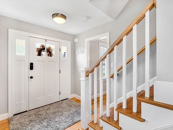 **Offers due Tues 10AM** This gorgeous young colonial home sits tall & proud in the beautiful Touisset Woods neighborhood. Every single detail is expertly finished. Your kitchen is a chef's dream with modern, white, soft-close cabinetry, gorgeous grey and white granite, a large island - perfection for holiday entertaining! Stunning hardwoods on the main floor. Upstairs you have two generous sized bedrooms with double-width closets and a glorious main suite with a walk-in closet and your private en-suite bath with dual vanity and glass enclosed step-in shower. There is a nook, perfect for reading or a desk that looks out over the neighborhood and a walk up attic that is spacious and ready-to-finish into the additional living space of your dreams. There's even a mudroom with custom built-in cabinetry when you come in from your garage and storage in the unfinished area of the basement. Outside, a low maintenance deck, professionally landscaped yard with sprinkler system and matched shed.