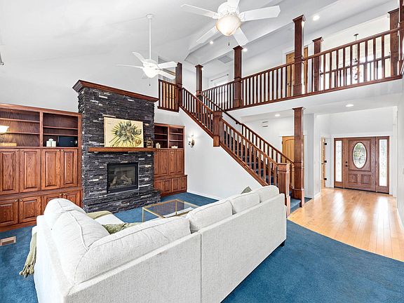 - Breakfast Bar, Built-in Features, Ceiling Fan(s), Central Vacuum, Double Vanity, Enclosed Toilet(s), Fiberglass Stall Shower, Granite Counters, Linen Closet, Open Floorplan, Pantry, Primary Downstairs, Shower/Tub Combo, Tile Shower, Vaulted Ceiling(s), Walk-In Closet(s), Wired for Sound