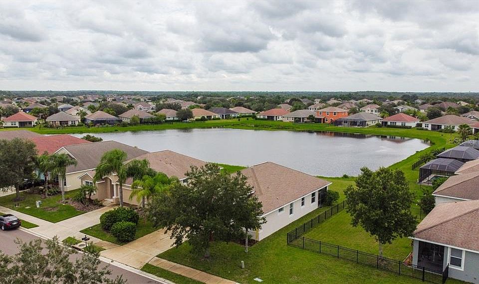 New Low price for 3 bedroom home in River Plantation! Lakefront lot with beautiful views. You will love the ease of living in this open and spacious floorplan, great for family or entertaining. Large windows in the living area and the master bedroom bring in lots of light and offer great views of the lake. Mulitple cooks can enjoy this spacious island kitchen with wood cabinetry, lots of storage, closet pantry, casual dining area and formal dining space. The screen enclosed patio leads to the large backyard which can be fenced. River Plantation is located near the Ft Hamer bridge in Parrish for easy commute to Bradenton or Sarasota and short drive to I-75. River Plantation has community pool, clubhouse, playground, basketball and tennis courts, and hiking trails. Fences allowed (within HOA guidelines). Low HOA fees and NO CDD! Shows well. This one will not last! Call today.