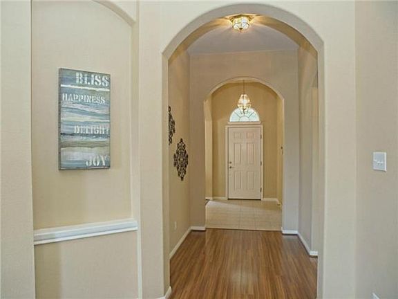 Fantastic floor plan in conveniently located Summer Crest neighborhood on a quiet interior street with shaded back yard in the afternoons! This home has soaring ceilings in the living area, open kitchen, & hard flooring (tile/laminate) on the whole first floor. Two other bedrooms & a loft area are upstairs. Great storage w/ 2 closets in the Master, great storage under stairs, & additional closet in loft area. Close to major roads (I35, Toll road), shopping (Wolf Ranch, HEB) & Downtown Georgetown.