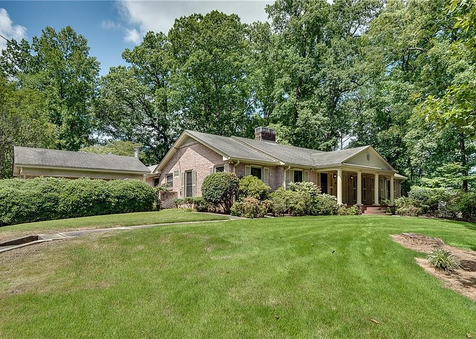 This solid well built home sits on more than half an acre with the driveway on Hopkins Terrace. Near the Toco Hills neighborhood, CHOA, I 85, and Executive Park, it is centrally located. There is a separate guest quarter with a full bath. The brick home is much larger than it looks from the street with 4 bedrooms, 2 full baths, 3 fireplaces and lots of living space.Entering the front door into the entry foyer, you will see large living room with a fireplace. Next you'll be in the spacious dining room. It seats 10 easily and opens to the kitchen which has lots of counter space and many cabinets that go up to the ceiling. The kitchen is open to the den where there is another fireplace. From one hall you will see the large laundry/utility and half bathroom room that share space. A little bit further is a door that takes you outside to the patio, guest quarter and the gazebo.. An office with a freestanding fireplace is just inside the back door with a private entry. It's perfect for the work at home individual. The guest quarter is a large room with floor to ceiling windows. It has a full bath ensuite. There is the main hall in the home off the den where the bedrooms and bath rooms are. Stain glass windows by an Atlanta artist grace many windows. The hardwood floors throughout most of the house are in excellent condition. A dry basement is around back. A blueprint is coming! There are so many rooms to use any way you choose. Let me show you home!