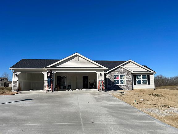 This wonderful Hunter floorplan built by Ideal Builders is nearly complete in Summerset Ridge. Open concept home featuring 3 bedrooms, 2 full baths, 1368 square feet, and a 3-car garage. Although this home is not a villa, it does have the OPTION for homeowner to be a part of the monthly lawn maintenance and snow removal program ($125.00 per month), however it is not a requirement. After stepping into the home through the foyer you'll be greeted by the spacious great room with chamfer ceiling, triple Andersen windows, and locking vinyl plank flooring in lieu of carpet. The kitchen overlooks the great room and includes upgraded custom Hickory cabinets (Mocha finish), stainless steel microwave and dishwasher that are included in sale, premium countertops, pendant lights over island, and spot resistant stainless pull-down kitchen faucet. Dining room is located behind the kitchen and has swinging door that steps out onto the 15'x6' rear covered patio. Great size primary bedroom that has its own private full bath with 5' walk-in shower, premium countertops, and upgraded bath fixtures. Large walk-in closet with plenty of shelving and hanging space. Bedrooms 2 and 3 are also nice in size as well as the second full bath that also has premium countertops and upgraded fixtures. Spacious laundry room has custom hickory square cabinet with hanging rod. Both the dryer and the oven are equipped with both gas and electric hook-up. 3-car garage with dedicated freezer outlet and pull-down staircase to attic with 3 sheets of OSB boards. Some other upgrades throughout the home include rounded drywall corners, ceiling fans, interior and exterior lighting, front door sidelite, upgraded trim with quarter round, wireless keypad for the garage, and garage door opener for 3rd bay as well as 2-car garage. 95% efficient HVAC system. Landscaping package included in sale and includes rough and final grading, seeding, 3 CY mulch beds, 10 shrubs (or hosta substitutes), and 2- 1 3/4" diameter trees. Lot of room for play and parking with the 32" wide concrete driveway. Situated on a great lot, this home has a great view of the pond in the neighboring community. Be sure to see for yourself all this great home has to offer.