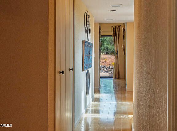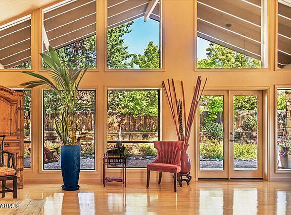Located in Sedona's popular Western Hills, this private and serene retreat offers both freedom and sophistication—with no HOA restrictions. Ideally positioned in West Sedona near premier dining, shopping, and world-class hiking trails, this home blends elegant design with functionality. Vaulted ceilings and floor-to-ceiling windows create a dramatic living space anchored by a rare wood-burning fireplace. The chef's kitchen impresses with its expansive layout and oversized island, ideal for entertaining. Enjoy Red Rock vistas from multiple rooms, including the dining area and main bedroom sitting nook with a gas fireplace. A flexible den with three closets and a ¼ bath currently serving as a film studio, offers endless possibilities—guest suite, home office, or creative retreat.