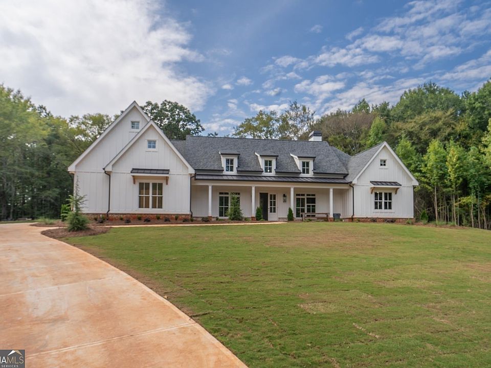 Don't miss your chance to make this New construction at Alcovy Springs your forever home! Modern Farmhouse with split bedroom plan on 2 acres. Three shed dormers, all functional and letting light into the home, grace the front of this Exclusive Modern Farmhouse open floor plan. The big front porch allows for lots of rocking chairs to enjoy the majestic views from the front of the house. French doors open from the porch to reveal the dining room and the family room. The kitchen has a large island with a great workspace with plenty of room for chairs. From behind the island, you can see all the way across the home to the family room with wood beams and cozy fireplace. The owners suite occupies the entire left side of the home with a large walk-in closet. The fact that the owners suite has access to the laundry room is a plus! Three bedrooms and two baths - one a Jack and Jill - are located across the home. All bedrooms have a walk-in closet. Upstairs you'll find a bonus room with a bathroom. Make this another bedroom, office or a theater room! Out back is a 40ax12a covered porch complete with a fireplace and an outdoor kitchen, it's also wired for a TV so you won't miss any games while grilling! This home has a great set up for entertaining family and friends. The views from this back porch, which overlook several oak trees that are 200+ years old, are just simply beautiful. The flat backyard is a plus and is ready for a pool, if you so desire!!Home is currently under construction!