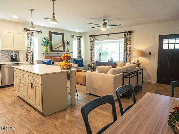 Welcome to the historic Sam Hughes neighborhood! This recently remodeled (finished in 2021) 3 bedroom / 2 bath home includes a split floorplan with large primary bedroom and a large family room. Entertain in the kitchen and by the fireplace or retreat out back. Stainless appliances and quartz countertops. Storage shed and two car carport in theback. Includes washer/dryer. Walking distance to the market, many restaurants, and U of A campus.