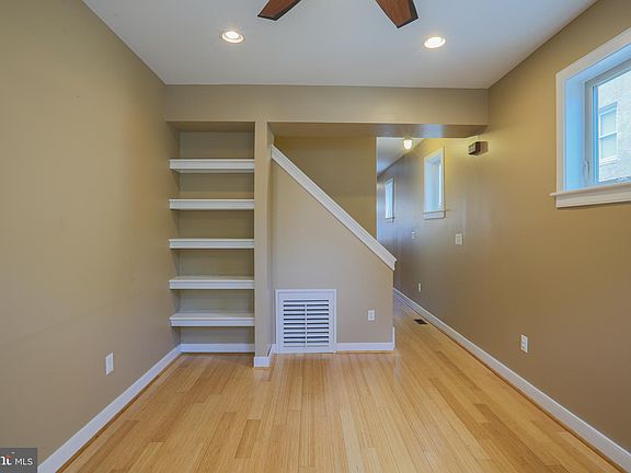 Beautiful 3 generously sized upstairs bedroom 2.5 bath high end rental property with a finished basement that adds additional private living space with the half bath located in the lower level, parking, a private courtyard and roof top deck, gorgeous built ins, open eat in kitchen complete with granite and stainless steel appliances, hardwood floors, plantation shutters, upscale bathrooms to include stand alone soaking tub.. End of Group which allows for lots of natural light!! Great floor plan for 3-4 Room mates, a family or anyone that likes plenty of space! Easy 1 block Walk to Patterson Park.. Available for immediate occupancy