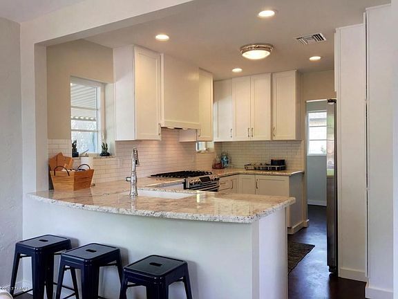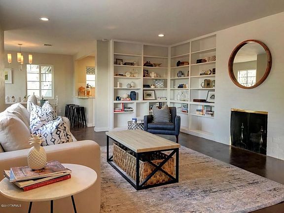 This exceptionally restored 1945 bungalow in historic Catalina Vista is a treasure of vintage details and sophisticated finishes. While retaining the integrity of original millwork and built-ins, polished concrete floors, and the brick construction, this three bedroom home has been completely updated for a modern lifestyle. The gourmet kitchen boasts granite counters, high end appliances, and polished nickel accents. Two gorgeous bathrooms are rich with classic elements; hexagonal marble tiles, reeded glass windows, and period style lighting. The living room has a large brick fireplace, views of the Catalina mountains, and flows to a spacious family room with French doors to the rear yard.Small workshop has new 60amp electrical panel, new door and window with view of the generous back yard NEW: plumbing throughout main house, gas lines, roof, windows, doors, electrical service, water heater, appliances, LED lighting, and paint. All construction permitted and inspected through the City of Tucson. Owner is licensed real estate agent.
