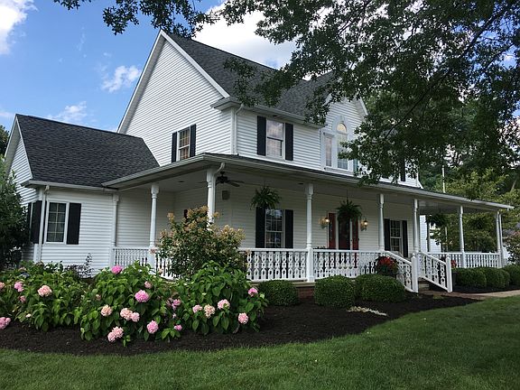 Classy Southern style home is the Belle of the neighborhood sits on .68 acres. Owners kept quality in mind when updating throughout their home. The manicured lawn and exterior feature plenty of entertaining area rain or shine on the exceptional wrap around porch or the backyard brick surface patio. This home's special features are very distinctively original. Enter into the large Foyer with hardwood flooring that takes you to the updated Chef's Kitchen with granite counters and stainless appliances and open to the Family Room area with stately windows and gas fireplace. You can exit to the awesome back patio area for outdoor dining and relaxing. The spacious updated first floor master suite warms the soul with Garden tub, step in shower and walk in closet and is privately tucked away from the other areas. The second level with 4 bedrooms and full bath has a convenient laundry chute that drops to the first floor laundry. More entertaining area is in the sooo fun finished lower level featuring a complete applianced kitchen, game room, Rec/Wet Bar Room and a TV room. There is an In-Law Suite or College Student Suite with separate entrance and access to the garage. New Arlo wireless camera system included to monitor your home from your smart phone. Come in for a viewing and make this home a life long dream come true. Light fixture in Dinette does not convey