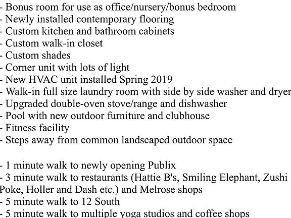 Stunning and sharp renovation; upstairs corner unit w/ tons of windows; granite counters in kitchen + island w/ breakfast bar; huge master closet w/ custom closet design; laundry room- washer dryer included ; den is perfect office/nursery or futon space for guests; fun complex w/ pool, fitness rm & clubhouse; 9 ft ceilings; new HVAC '19