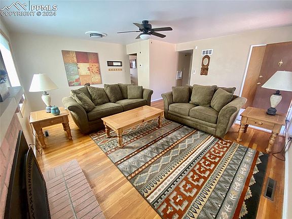 Prime location!! This low maintenance, charming brick/vinyl sided rancher, with newly xeriscaped yard is centrally located minutes from downtown & very close to the popular Patty Jewett Golf Course.. As you enter the home you will be welcomed by rich oak hardwood flooring, neutral colors throughout, and an attractive brick hearth gas fireplace that frames the living room. The oak flooring continues into the hallway & into 3 nice sized bedrooms. There is a remodeled 3/4 bath with beautiful tiled shower & granite countertop vanity. There is a 2nd 3/4 bath with an updated granite vanity & the washer/dryer is conveniently located within this bathroom. The well designed kitchen has updated oak cabinets, lots of storage and decorative shelving. The kitchen opens to a spacious dining room with a bay window and built in shelving. Walk out the back to see mountain views & a fully fenced newly xeriscaped back yard with a concrete patio for entertaining. In the winter you will see Pikes Peak too! There is a detached oversized 1 car garage off the alley. This house has central A/C, 3 large storage bins to hold outdoor equipment & ramps front and back for easy wheelchair access. You can walk or bike to the nearby Rock Island Trail, Nancy Lewis Park, or the popular Palmer Park with an abundance of hiking/ biking trails. Furniture and decor can be included, if buyer would like it. This updated home is move in ready, clean and waiting for you! WELCOME HOME!