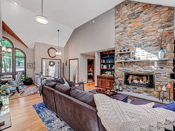 Distinctive classic appeal enhanced by a superb streamfront setting. Tasteful interior style tailored to the aura of premium views. Inviting living with exquisite stone propane fireplace, hardwood and crafted built ins. Sun-filled dining area with rich wood ceiling and custom lighting. You'll love the gorgeous young custom kitchen beautifully blended to the delightful breakfast area. Choice decorator selections include quartz counters, a striking backsplash and flooring, stainless appliances, and generous lighting. 4 Bedrooms, 2.5 Baths. Easy 1st floor living. Private primary suite with 2 walk in closets, bath with garden tub, shower, preferred water closet and dual sinks. Escape to the 2nd floor to the 4th bedroom highlighting versatility with grand remote space. Comfortable central air conditioning and oil heat, laundry room, huge accessible crawlspace, attic storage, and 2 car side entry garage. Showcasing splendid outdoor living for craved relaxation. The pleasant screened porch, extensive decking, rejuvenating hot tub and firepit area are all positioned to absorb picturesque scenery. Enjoy your favorite book, great fishing, stream sounds and good company. Truly a fine quality Lake Naomi home that compliments an adored setting.