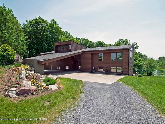 Rare Earth, 67 acres of private paradise, includes approx. 20 acres of natural habitat and virgin ground, a nature lovers dream! Eco Friendly contemporary home with passive solar heat and energy efficient geothermal heat pump, over 2900 sq ft overlooking unspoiled panoramas of glistening 2acre spring fed pond with natural aquifer, stunning hardwood forest with towering Beech trees, California Redwood & Sequoia and amazing nature with special granite meditation stone used by Native Americans! This is a setting that amazes during every season of the year. A magnet for wildlife with deer, turkeys, songbirds and all varieties of Michigan's best natural visitors. The pond also provides delight for swimming and outstanding fishing.