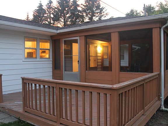 Enclosed Screen Porch on back of property. Fire pit and secluded view. Quiet. Basement can be a 4th bedroom.