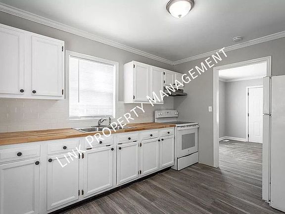 Be in your newly renovated 2 bedroom before the Holidays. This charming home offers a convenient location and a host of desirable features. Step inside to discover a beautifully updated interior with new luxury vinyl plank flooring throughout, creating a modern and stylish ambiance. The kitchen boasts a stove and a brand new refrigerator, perfect for preparing delicious meals. You will love the New Butcher Block Countertop look with new Fixtures. With washer/dryer connections available, laundry will be a breeze. Additionally, this house comes with a garage, providing ample space for parking and storage. The exterior has been upgraded with new vinyl siding, enhancing the overall curb appeal. We will be painting front porch and deep cleaning before move in.