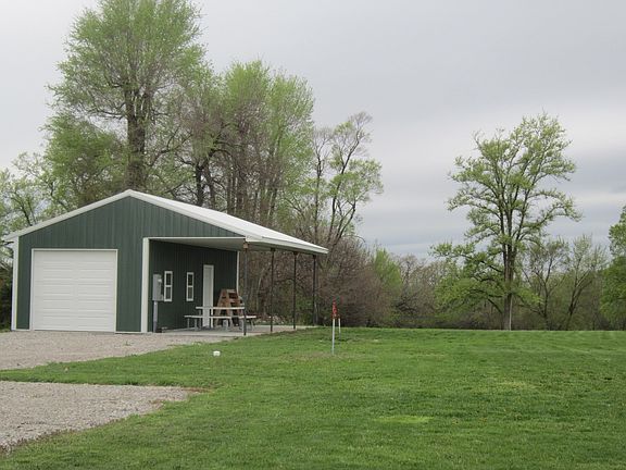 Beautiful acreage building site North side Lovilia, with garage/cabin/campsite built in 2016. 9' overhead door. Camper hookup and complete utilities in garage. P-tac unit for Heat & AC in building. Owners working on updates and will leave new water heater, sink and shower enclosure with building. Hydrants, dump site for camper and new sidewalks on property.