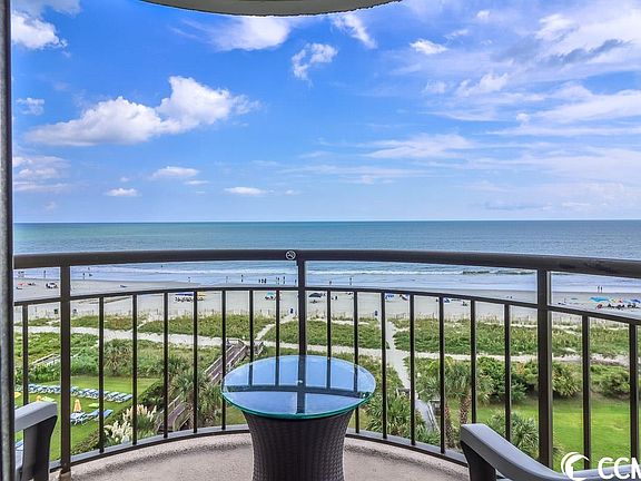 Welcome to your beachfront retreat at Meridian Plaza, a delightful 1 bedroom, 1 bathroom DIRECT OCEANFRONT,  South facing corner end unit. This updated gem of a property is primed to be your lucrative investment, idyllic vacation escape, or a cozy permanent residence by the ocean. The inviting, sunlit living room boasts an expansive view of the picturesque beach, seamlessly bringing the outdoors in. The open layout amplifies the natural light, creating an airy and cheerful ambiance throughout. The well-appointed kitchen with granite countertops is designed for both functionality and style, equipped with all the essentials for a delightful night in. The convenient breakfast bar adds a perfect spot for casual dining or socializing over a meal. Retreat to the tranquil bedroom after a day of seaside adventures and enjoy the terrific views of the ocean. It offers a serene atmosphere, inviting you to unwind and rejuvenate. The bathroom features a vanity and a jetted tub/shower combo, providing a spa-like experience in the comfort of your own home. Step onto the private balcony and be mesmerized by the sights and sounds of the beach, and everyday luxury that comes with this unit. Meridian Plaza doesn't just offer a home; it offers a lifestyle. Residents enjoy a range of amenities including both indoor and outdoor pools and jacuzzis, perfect for relaxing or entertaining. Plus, a convenient walkway leads you directly to the pristine beach, where endless relaxation and recreational opportunities await. Situated off 17 Business, this condo provides not only immediate beach access but also proximity to renowned attractions like The Myrtle Beach Boardwalk, Broadway at the Beach, Coastal Grand Mall, The Market Commons, golf courses, mini-golf, diverse dining options, shopping, and vibrant entertainment venues. Convenience and leisure converge in this prime location, making every day a beach day and every outing an adventure. Don't miss this chance to own a piece of coastal paradise. Book your showing today!